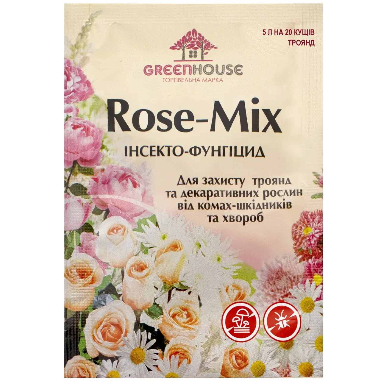 Інсекто-фунгіцид "Роже Мікс" — це біологічний препарат, який використовується для комплексного захисту троянд та інших квіткових і декоративних рослин від широкого спектра грибкових захворювань і шкідливих комах. Він містить живі корисні мікроорганізми та продукти життєдіяльності, які забезпечують захисну та лікувальну дію. Детальний опис: Дія: "Роже Мікс" має подвійну дію проти шкідників і грибкових захворювань. Активні інгредієнти Комплекс природних авермектинів: 0,4%. Агрономічно корисні бактерії Bacillus subtilis: з титром не менш ніж 1x108 КУО/год. Біологічно активні продукти життєдіяльності мікроорганізмів: фітогормони, амінокислоти, антибіотики. Захист від шкідників: Діє на тлей, довгоносиків, пильовиків, жовтогарячу білокрилку та інші шкідники. Захист від грибкових захворювань: захищає від іржі, борошнистої роси, плям і фузаріозу. Кому підходить: Застосовується для комплексного захисту троянд, а також інших квіткових і декоративних культур (піони, хризантеми, гладилоуси, флоксі, нарциси, бегонії). Переваги: Забезпечує комплексний захист від широкого спектра шкідників і грибкових захворювань. Стимулює рістові процеси рослин і сприяє рясному цвітенню. Формує природний імунітет на рослинах. Безпечний для рослин і довкілля. Економічний у використанні. Захисні властивості зберігаються впродовж 14 днів після оброблення. Покращує плодородіння та структуру ґрунту.